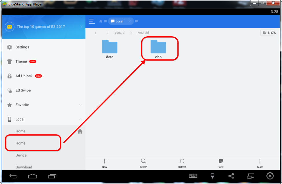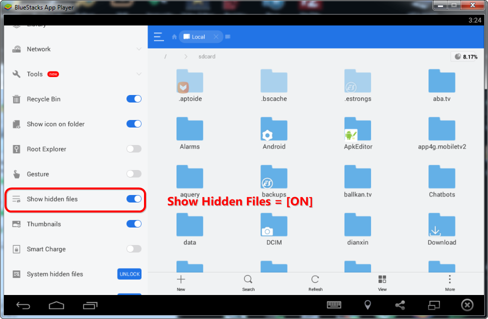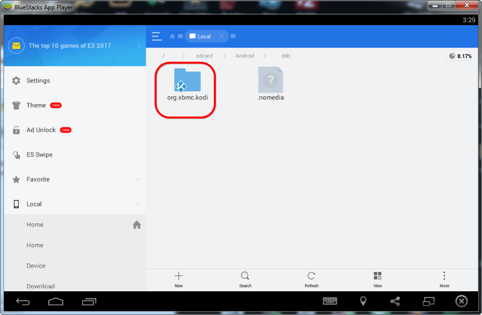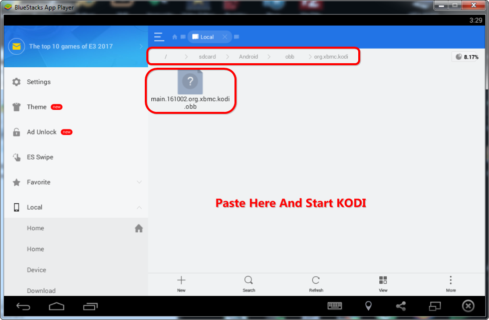 1. Shkarko & Instalo ES File Explorer.apk 2. Shko Menu > Show Hidden Files = [ON] 3. Local Android > obb >> org.xbmc.kodi Per Me Shume info Shiko > Fotot Nga 1 - 6